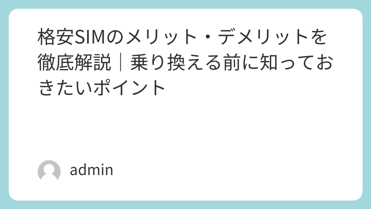 格安SIMは、スマートフォン料金を抑えたい人にとって有力な選択肢の一つです。料金の安さやプランのシンプルさなどのメリットがある一方で、通信速度やサポート体制などに違いがある点も理解しておくことが重要です。